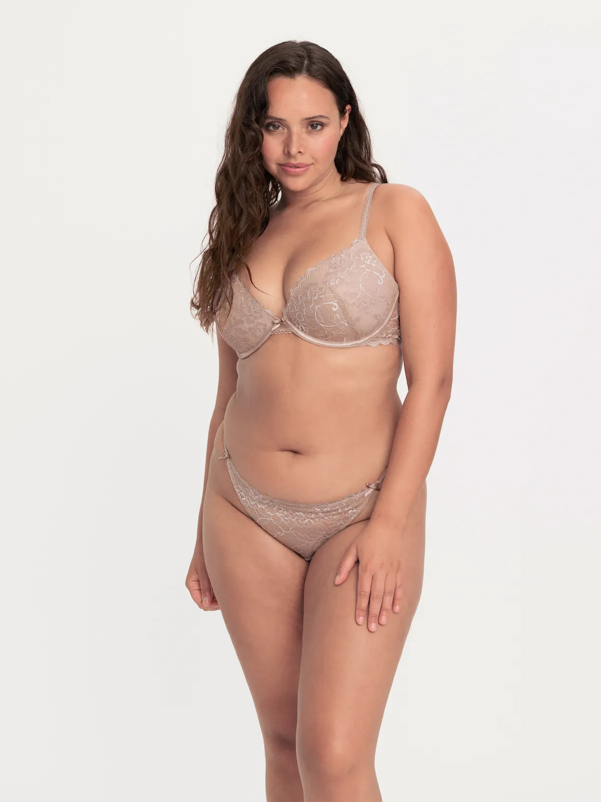 Dawn String Mini ir jutekliskas, gaišas smilšu krāsas mežģīņu biksītes. Biksītes ir sievišķīgas un ļoti greznas. Pateicoties plānajam mežģīņu audumam, biksītes zem apģērba paliek gandrīz nemanāmas.
